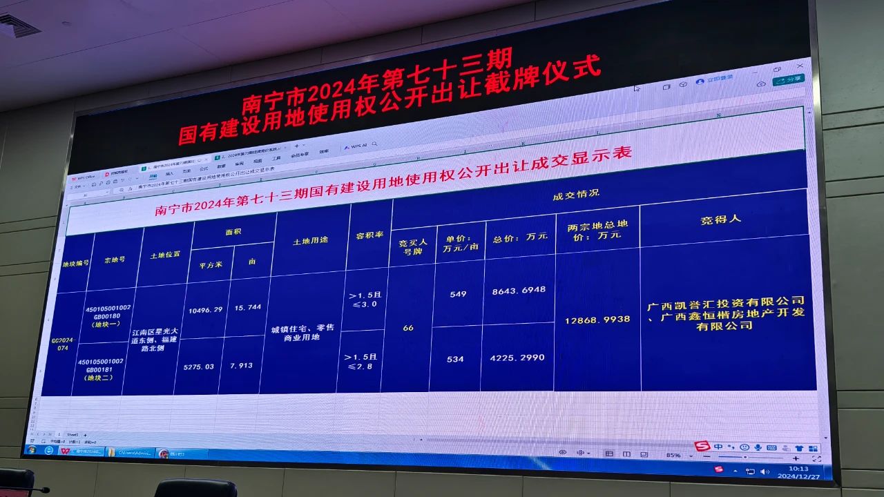 12月27日,南宁土拍现场将截牌江南区1幅商住地块该地块是位于南宁市江南区星光大道东侧、福建路北侧GC2024-074地块,为白沙半岛片区城中村改造福建路地块项目,总出让面积23.657亩,两个分宗均是商住用途,容积率上限地块一3.0/地块二2.8,最大计容建面合计约4.63万㎡。